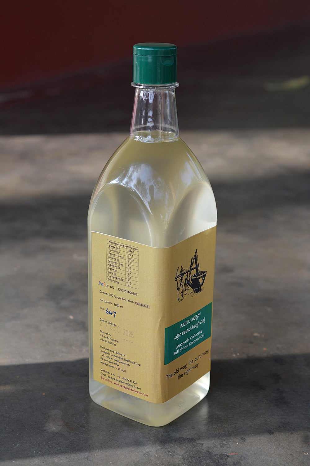 Bull-driven oil is labour-intensive, time-consuming, and yields much less than industrial extraction. The cost reflects the care, time, human, and the animal's effort involved. While we would like to avoid plastic, it is currently the most practical and affordable option for safe packaging and transport without increasing your cost. Please reuse the plastic bottles at home instead of disposing of them.