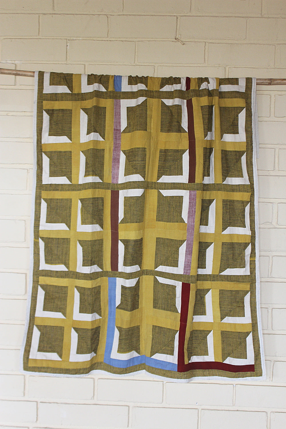 • This quilt, with no batting inside, is designed, cut, and sewn by Sharmila at Mysore.